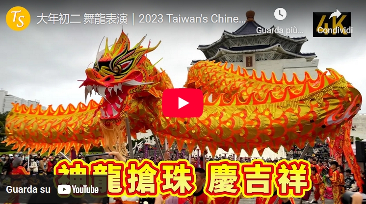 La danza del drago (舞龙, wǔlóng) è una tradizione spettacolare del Capodanno cinese, simbolo di fortuna, prosperità e protezione. Lunghe figure di drago, sostenute da numerosi danzatori, si muovono a onde e spirali seguendo il ritmo di tamburi e gong, inseguendo spesso una “perla del drago” che simboleggia saggezza e ricchezza. Oltre a intrattenere, la danza serve a scacciare gli spiriti maligni e a portare buona fortuna alle comunità.